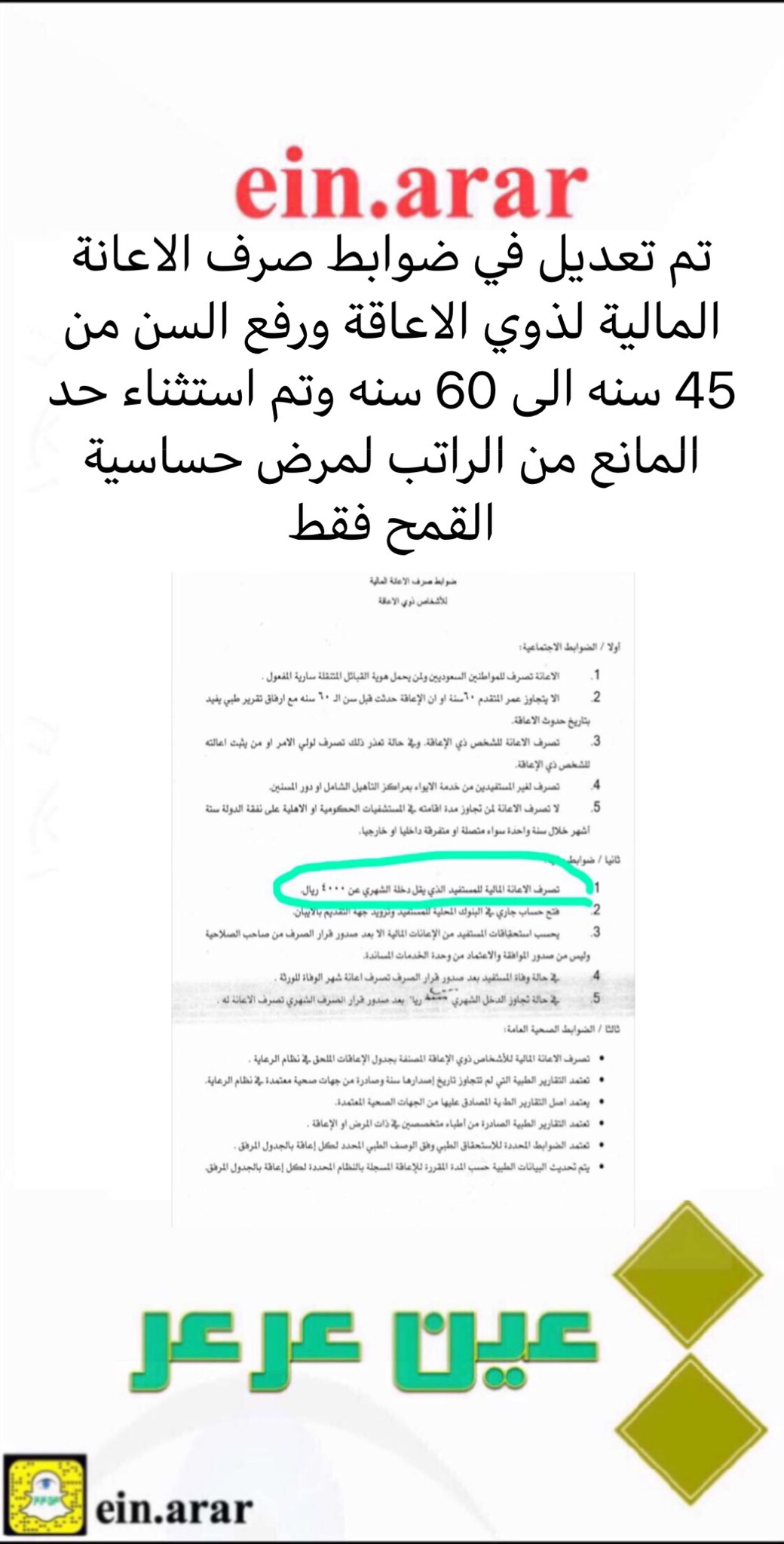 الإعاقة البسيطة وتحصل على 4000 ريال.