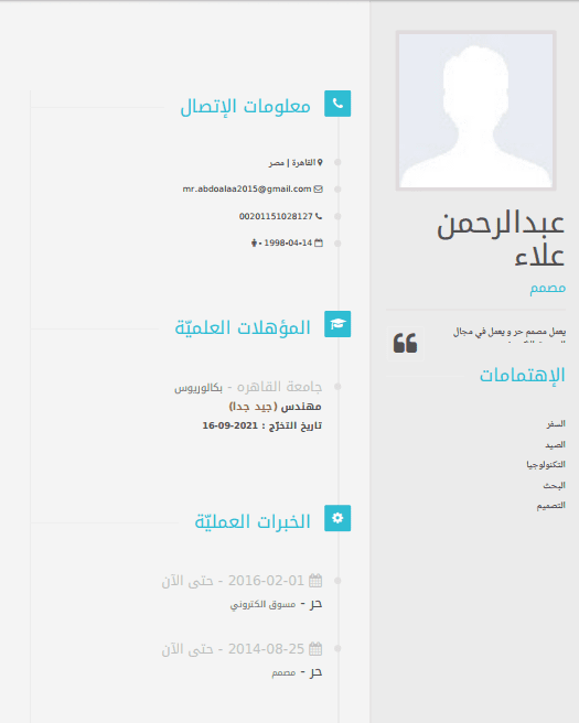 كيف تصيغ التعليم في السيرة مع أمثلة 1 المدرسة الثانوية. 3 2 هواية التدوين الصوتي. تعتبر الاهتمامات في السيرة الذاتية من الأجزاء التي تتعامل بشكل كبير مع شخصية صاحب ملف السيرة الذاتية خاصة وأن المعلومات المتعلقة بالمؤهلات الأكاديمية والخبرات العملية تعطي فكرة عن الجانب المهني في حياة الفرد فقط لكنها لا تعكس طبيعة شخصيته بالشكل المطلوب بينما الاهتمامات وكذلك الهوايات في سيرته الذاتية يمكن أن تؤدي هذا الدور كما هو مطلوب ومع ذلك لا بد من اتباع الطريقة الصحيحة عند كتابة هذا الجزء في السيرة الذاتية كما سيتم ذكره في الأسطر التالية. القيام بمجموعة متنوعة من الألعاب الرياضية شغف الموسيقى والأفلام والخيال.