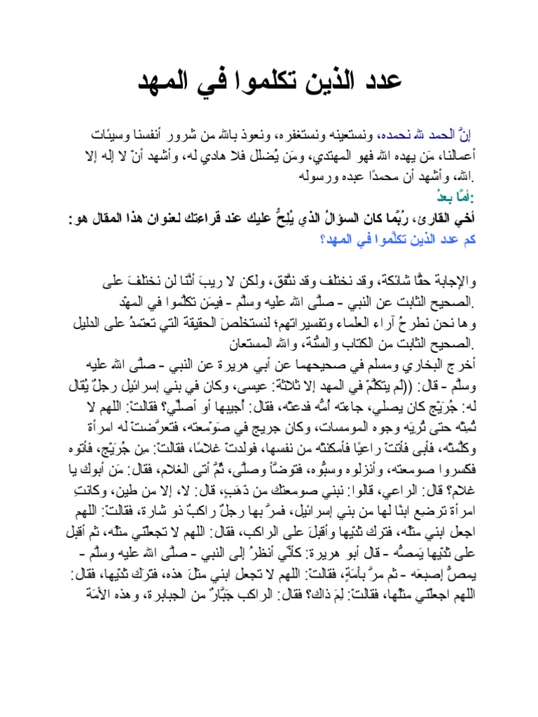 إسلاميات من هم الثلاثة الذين تكلموا في المهد