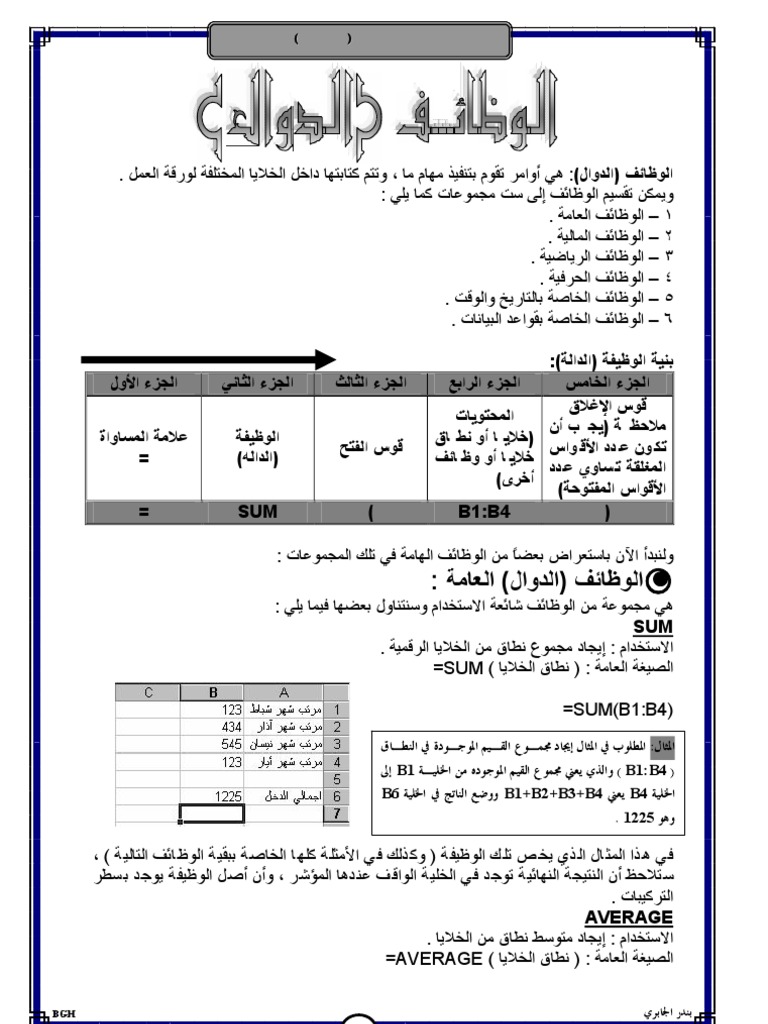 الدالة اهم الدوال في Excel Pdf