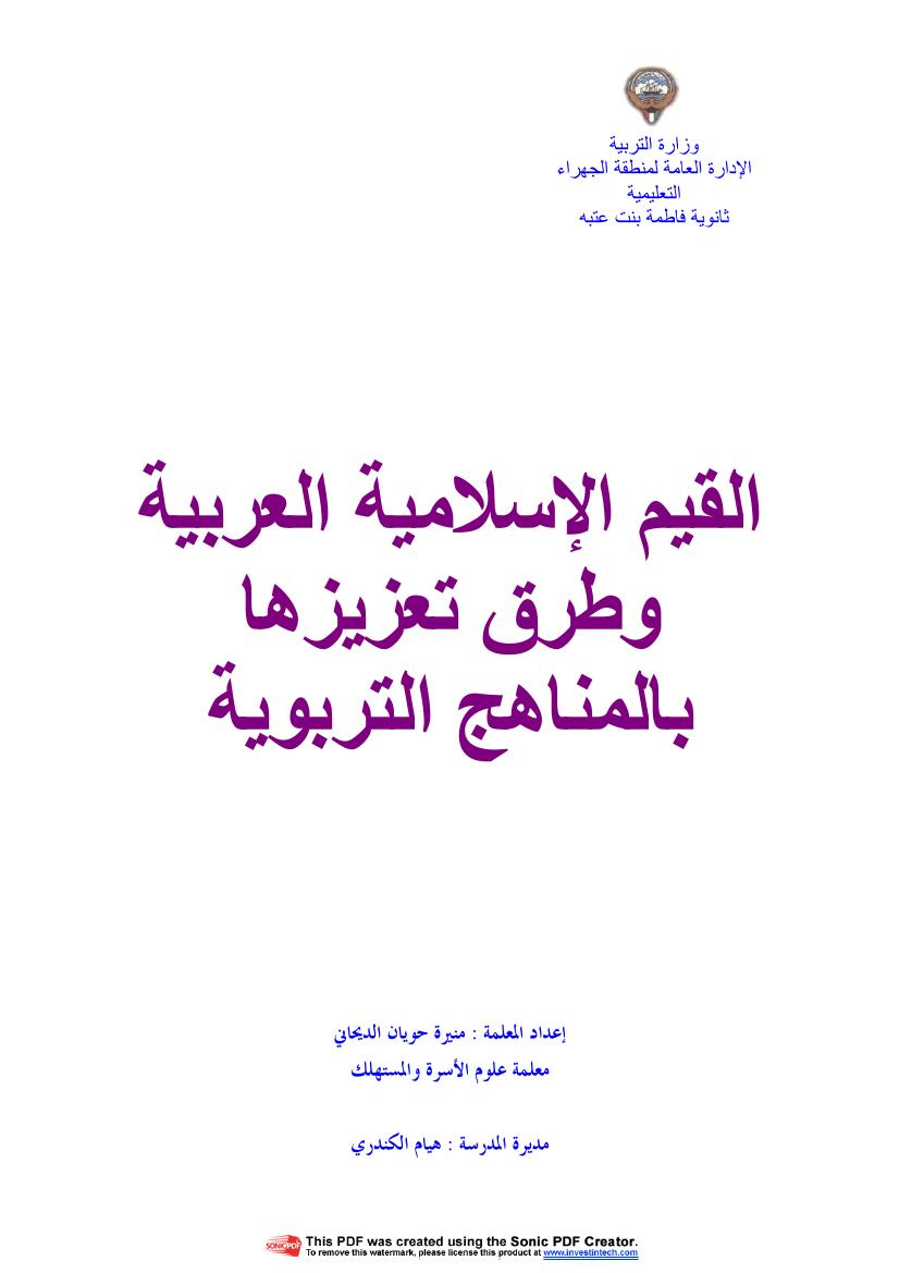 علوم أسرة ثانوية فاطمة بنت عتبة كيفية تعزيز القيم في المناهج التربوية