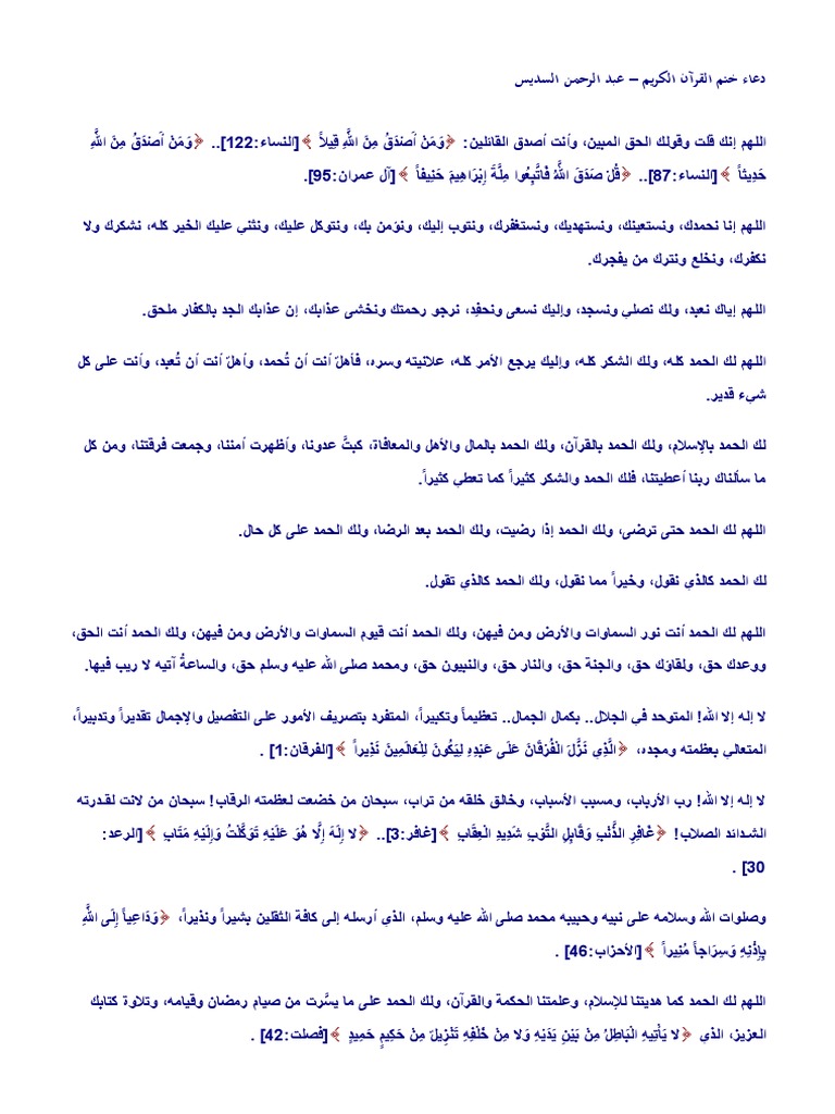 دعاء ختم القرآن للسديس مكتوب مختصر