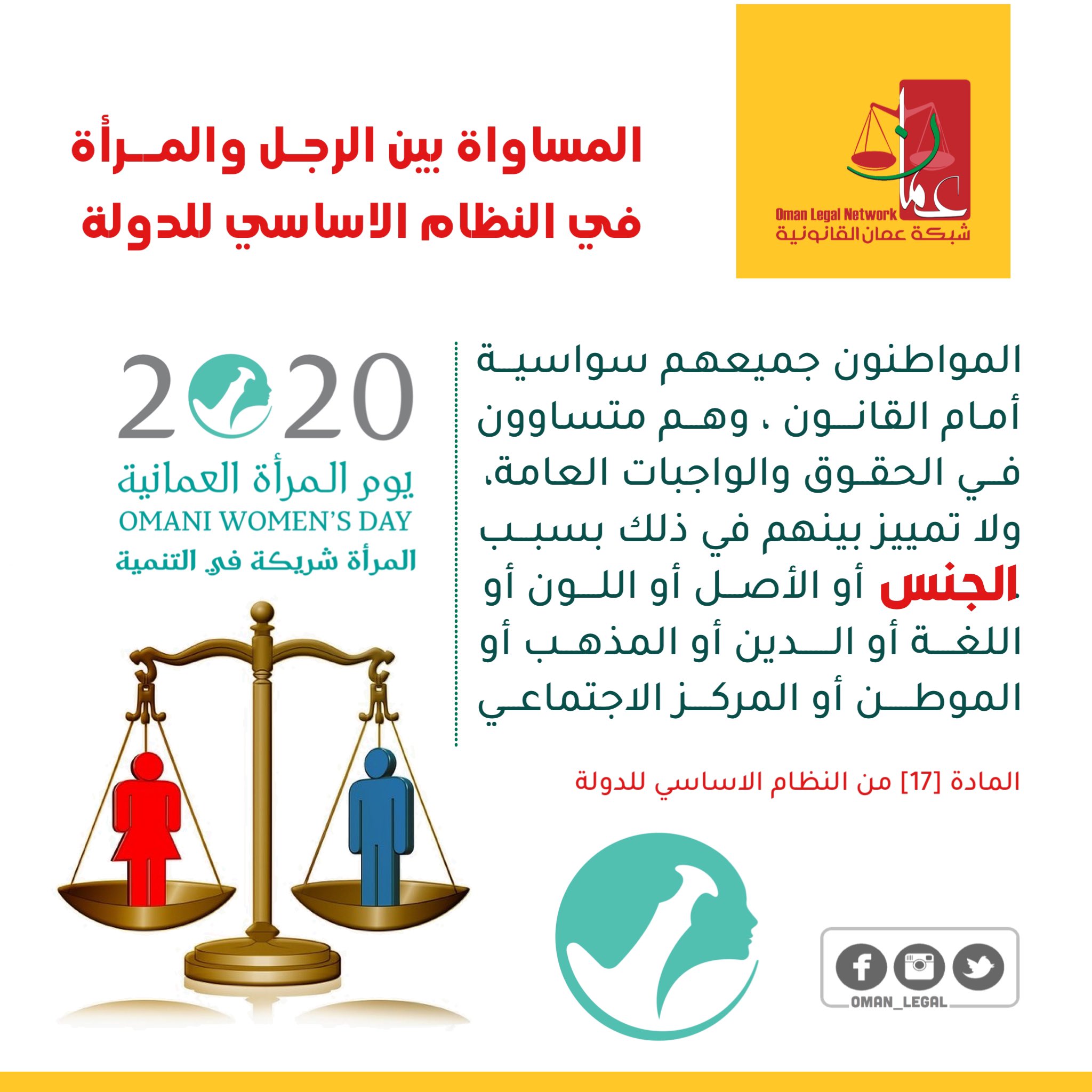 شبكة عمان القانونية On Twitter المساواة بين الرجل والمرأة في النظام الأساسي للدولة الحماية القانونية للمرأة يوم المرأه العمانيه